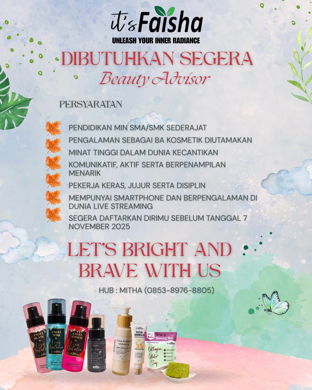 - Diutamakan memiliki pengalaman sebagai Beauty Advisor kosmetik.