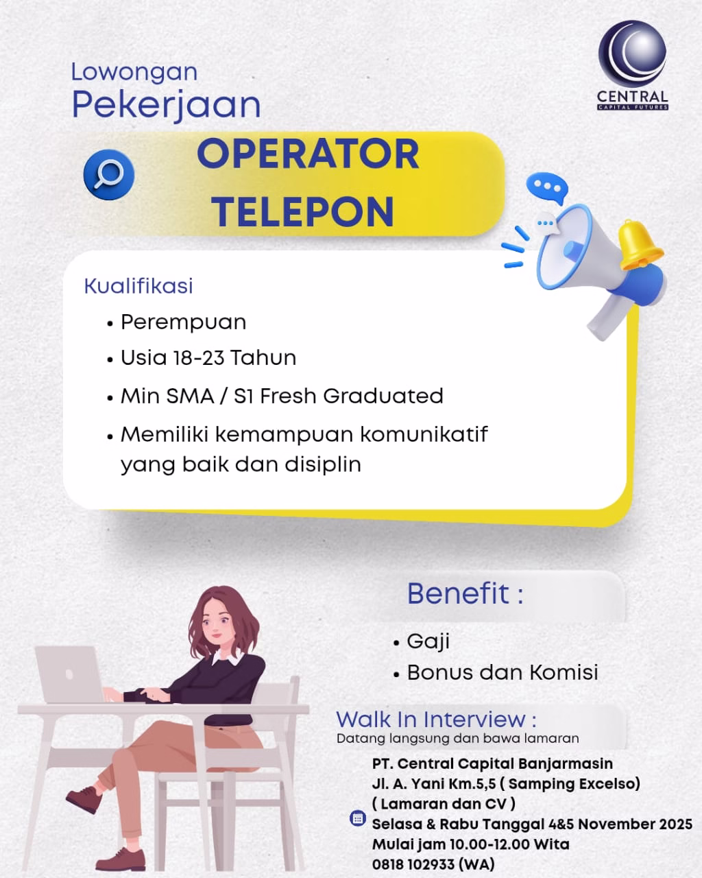 - Minimal lulusan SMA/S1 (Fresh Graduate)